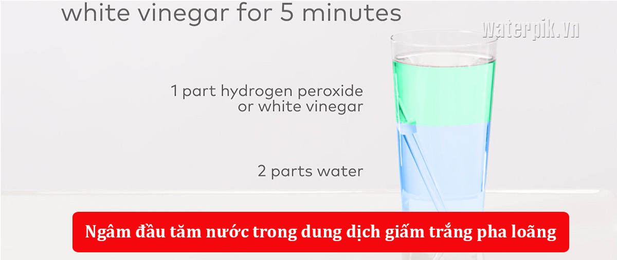 - Hằng tuần: Làm sạch đầu tăm nước bằng dung dịch nước ấm pha giấm hoặc dung dịch sát khuẩn nhẹ.