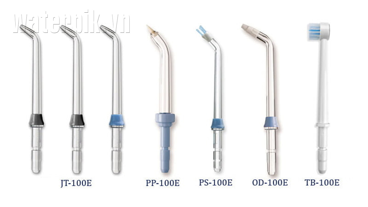 Waterpik WP-660 đi kèm 7 đầu tăm khác nhau, mỗi loại phục vụ một mục đích cụ thể: