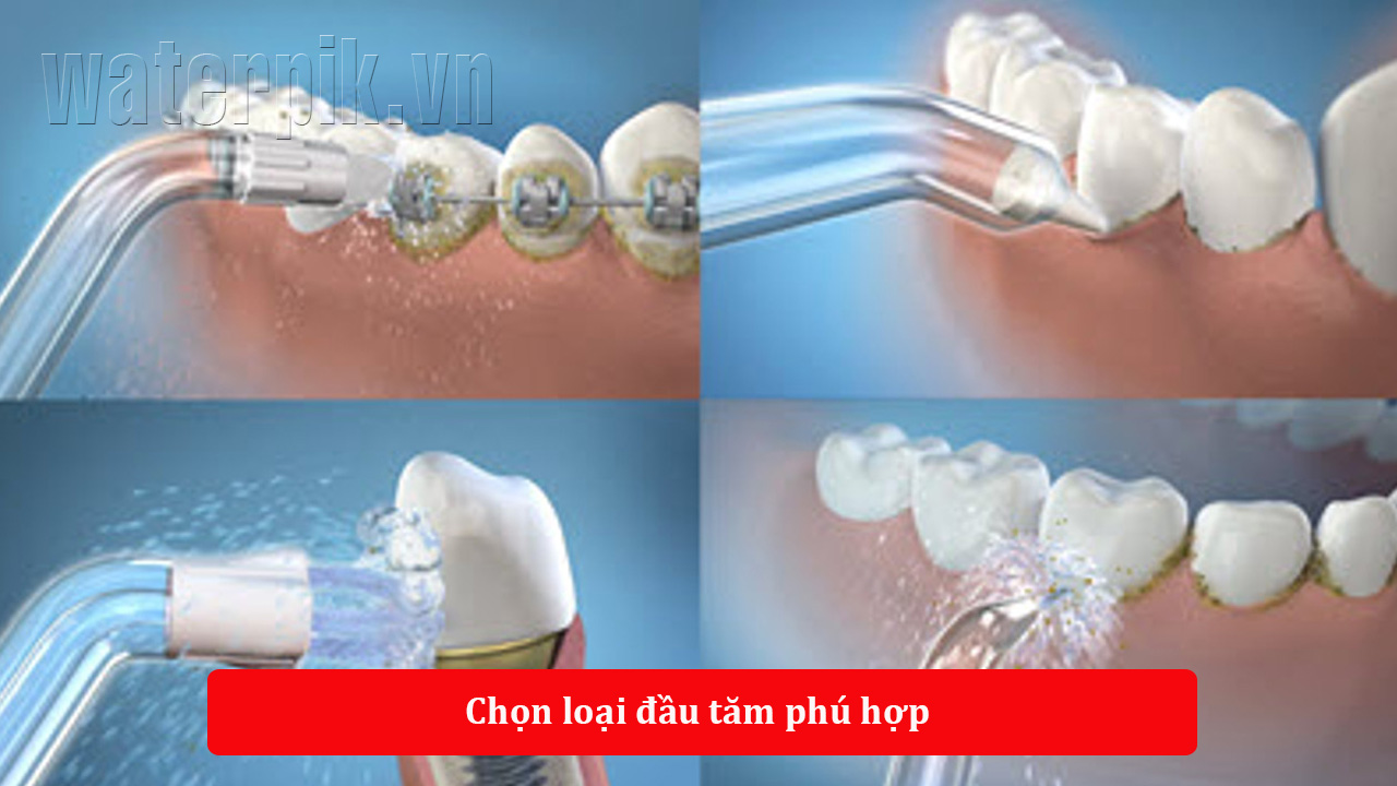 - Lắp đầu tăm nước: Chọn đầu tăm phù hợp và lắp vào máy.