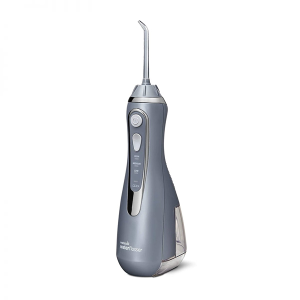 Máy tăm nước Waterpik WP‑587 là thiết bị chăm sóc răng miệng cao cấp, giúp loại bỏ mảng bám và thức ăn thừa kẽ răng hiệu quả hơn chỉ dùng bàn chải. Máy có 3 mức áp lực nước, bình chứa 207 ml, đầu xịt xoay 360° và đi kèm 4 đầu tăm, phù hợp cho cả người niềng răng hoặc răng nhạy cảm. Thiết kế không dây, gọn nhẹ mang lại trải nghiệm vệ sinh răng miệng tiện lợi, sạch sẽ, an toàn và nhanh chóng.